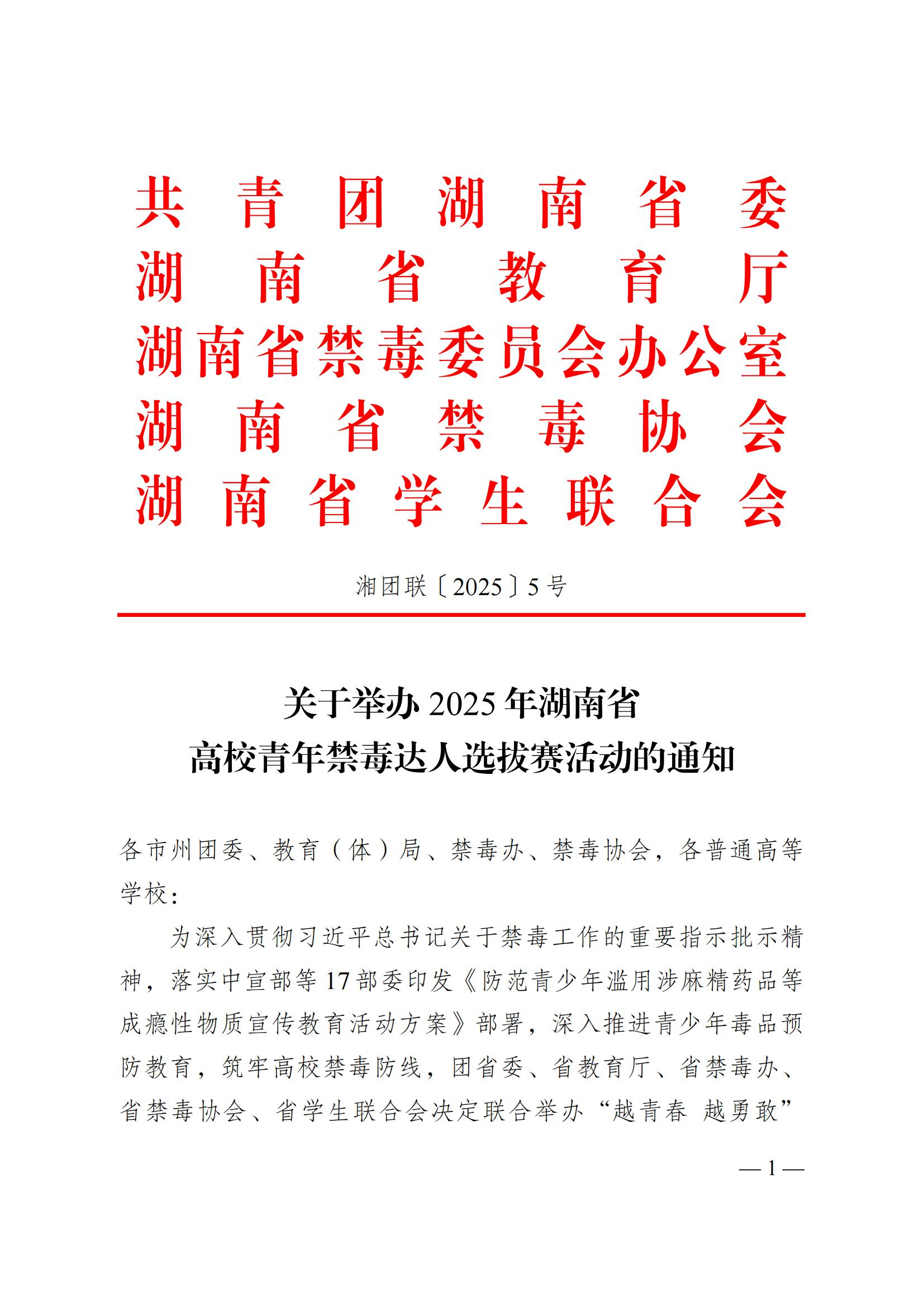 附件:关于举办2025年湖南省高校青年禁毒达人选拔赛活动的通知