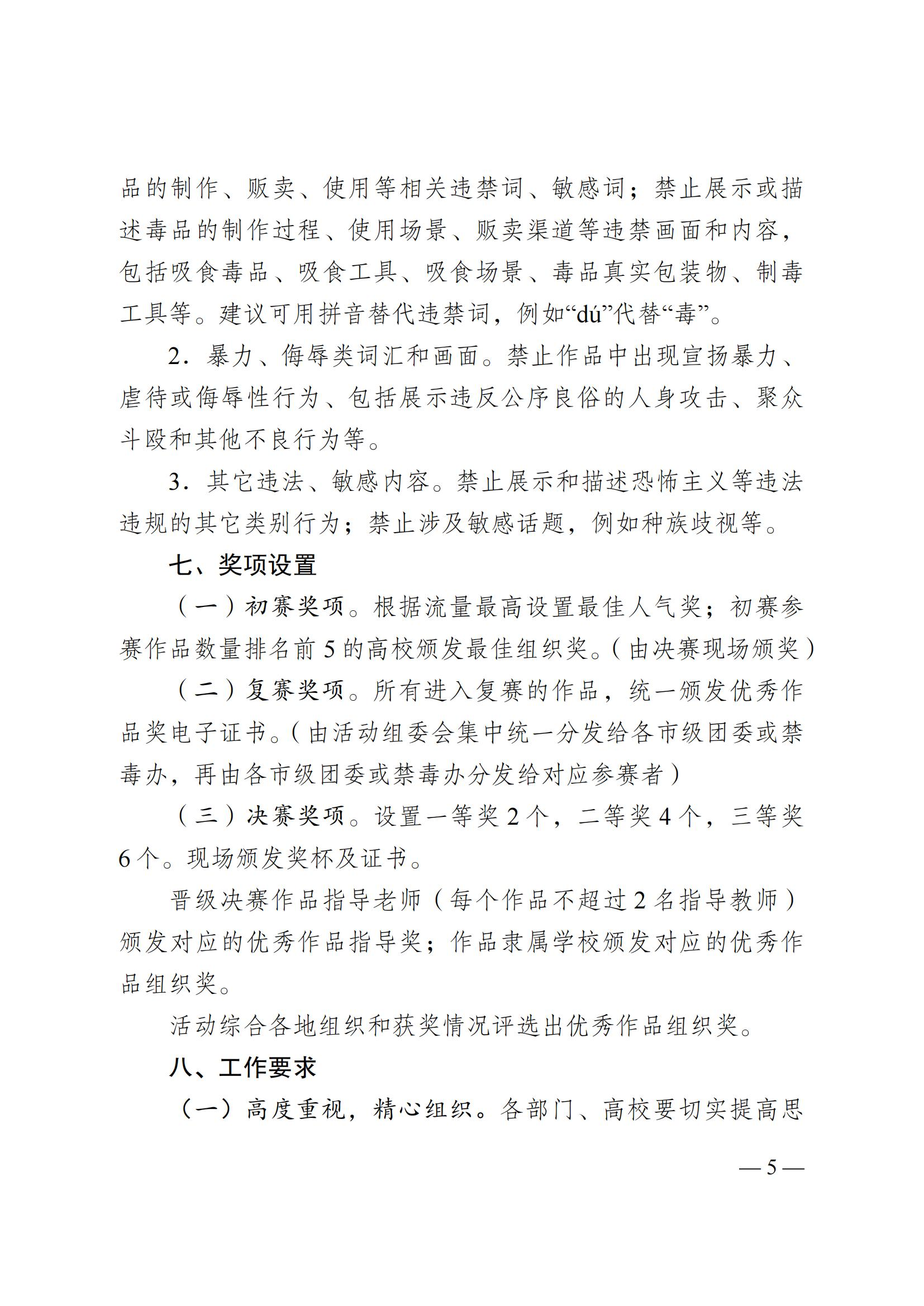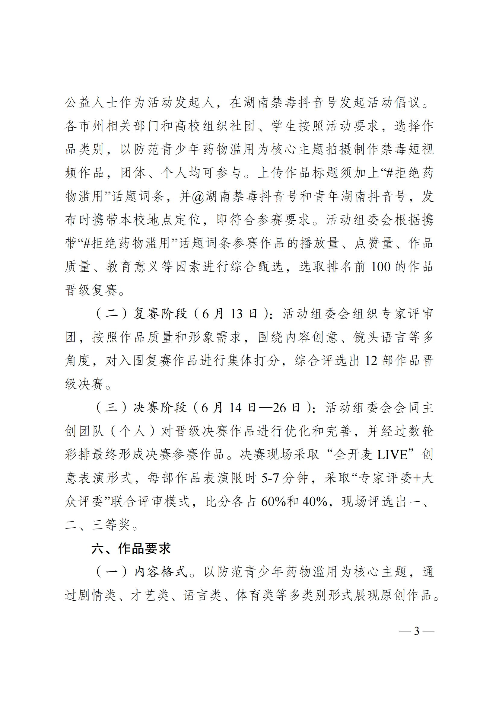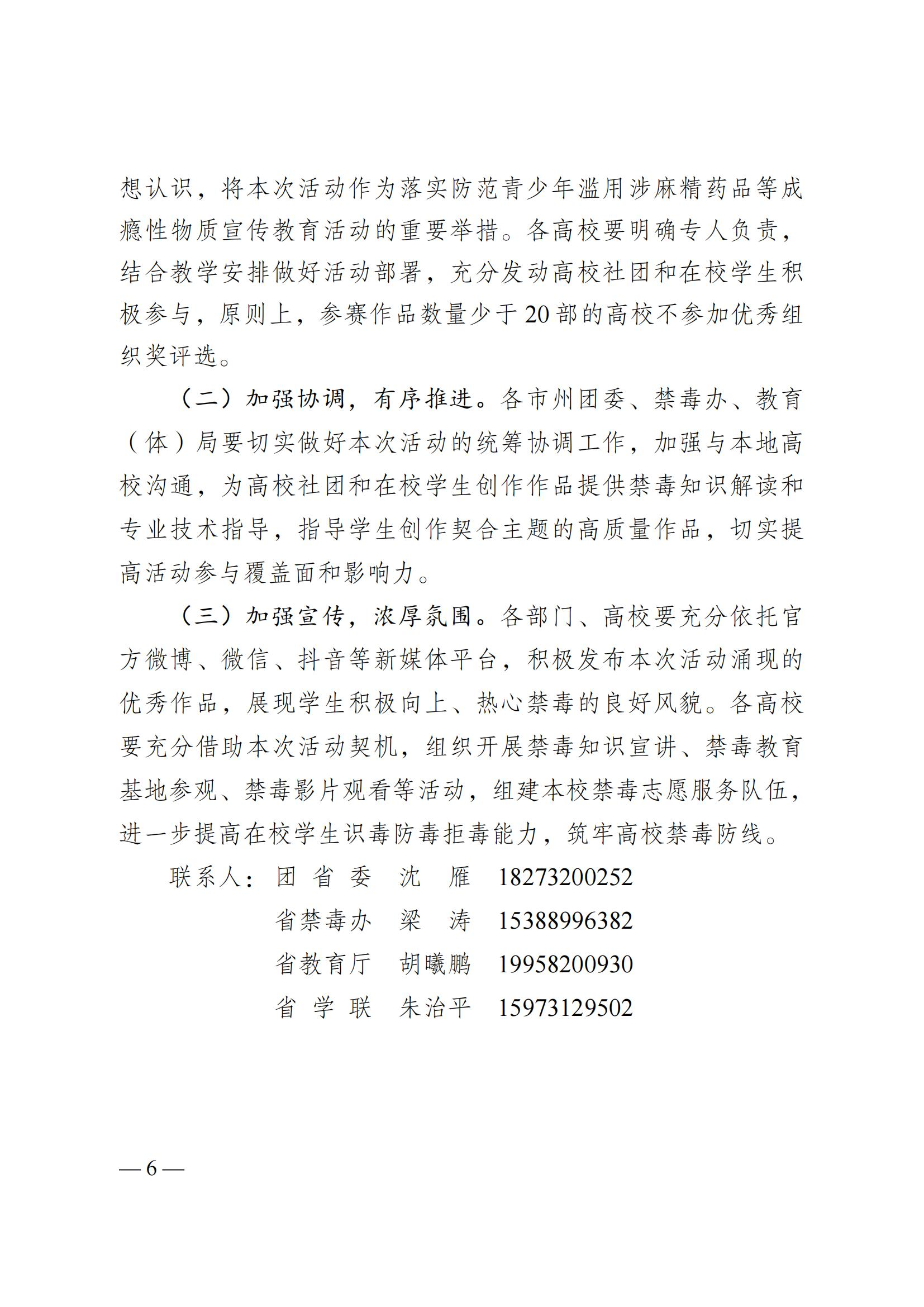 现将省禁毒办《关于举办2025年湖南省高校青年禁毒达人选拔赛活动的通知》转发给你们,请各区县(市)积极组织,加强宣传,动员高校学生广泛参与,严格按照通知要求拍摄创作高质量的禁毒短视频作品,充分展示学生朝气蓬勃、奋发向上的精神面貌。各单位要高度重视,组织高校学生围绕防范青少年药物滥用为核心主题,创作发布符合参赛要求的禁毒短视频作品,并于6月10日前持续点赞推送,切实提高活动参与覆盖面与影响力。